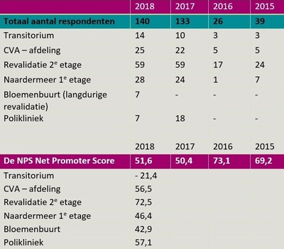 revalidatie heeft ervaren. Daarom hebben we ook in 2018 weer zo'n 140 enquêtes afgenomen.