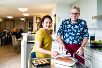 Leo Verbeek is kookcoach bij het project ‘Eten is een feestje’ voor woonondersteuners in Vivium De Antonius Hof. Zorgcollega Sandhya Ghoerahoe meldde zich spontaan aan voor de eerste reeks van zes workshops. ‘We zijn bewuster bezig met eten en koken voor mensen met dementie.’ Lees hier het hele verhaal van Leo en Sandhya.