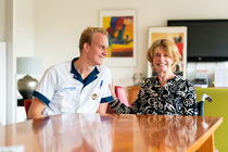 Twee weken verblijft ze nu bij Vivium Naarderheem om te revalideren na een gebroken heup. Reikhalzend kijkt Marijke Confurius (76) ernaar uit om weer lekker buiten te fietsen. Tot die tijd is het veel oefenen en Fries praten met helpende Lútsen de Haan. ‘Da’s fijn even wat anders.’